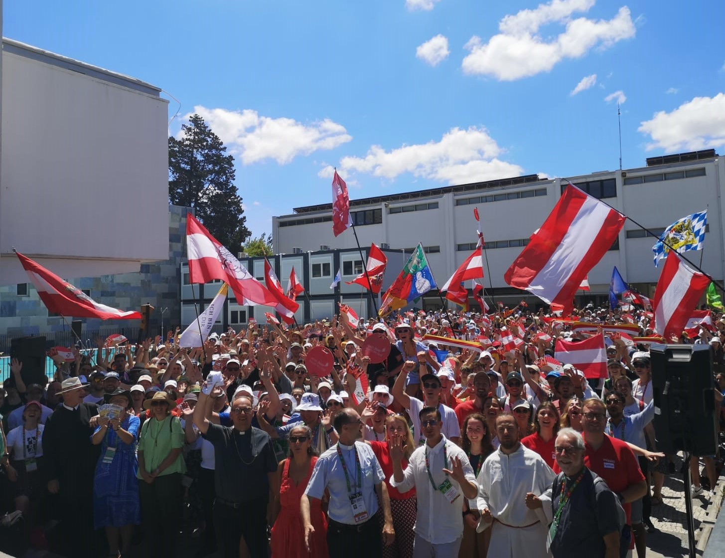 Der erste Höhepunkt war das Österreicher-Treffen mit Bischof Krautwaschl, der ganz persönlich über seinen Lebensweg erzählte, auch über seine Zweifel und was ihm dabei geholfen hat. Bei diesem Treffen lernten die österreichischen Teilnehmenden einander besser kennen, sangen und beteten gemeinsam und kamen beim anschließenden Essen miteinander ins Gespräch.
